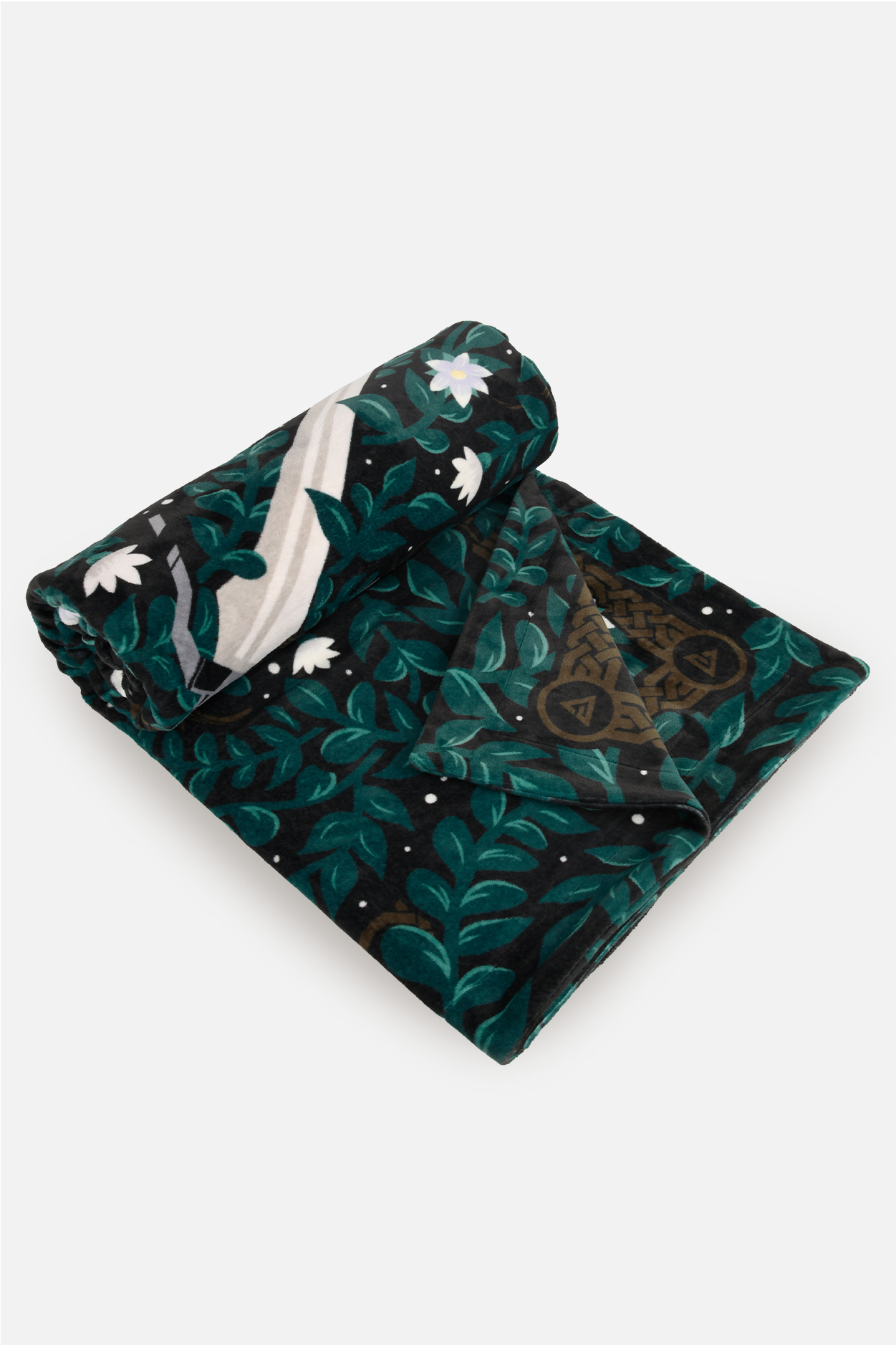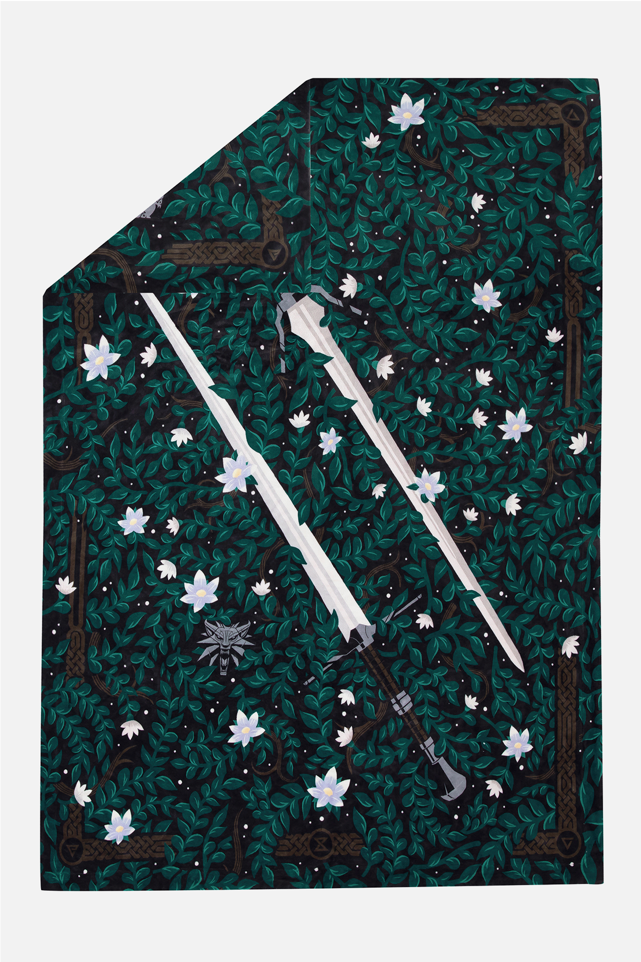 Deux épées, cinq signes et une bonne nuit de sommeil – voilà ce que vous offre la Couverture des Épées de Geralt. De grande taille et ultra confortable, c’est le compagnon idéal pour un sorceleur fatigué – et une excellente façon d’apporter un peu du Continent dans votre chambre !